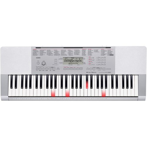 Das Casio LK-280 verfügt über 61 anschlagsdynamische Tasten, die auf Wunsch beim Anspielen aufleuchten. Gerade Kinder gewinnen dadurch mehr Sicherheit beim Keyboardspiel – auch ohne Klavierlehrer. Die Funktionen und Effekte sind über die Buttons zuschaltbar und die Lautstärke lässt sich einfach über den Drehregler verändern. In dem gut lesbaren Display wird der aktuelle Song angezeigt.
